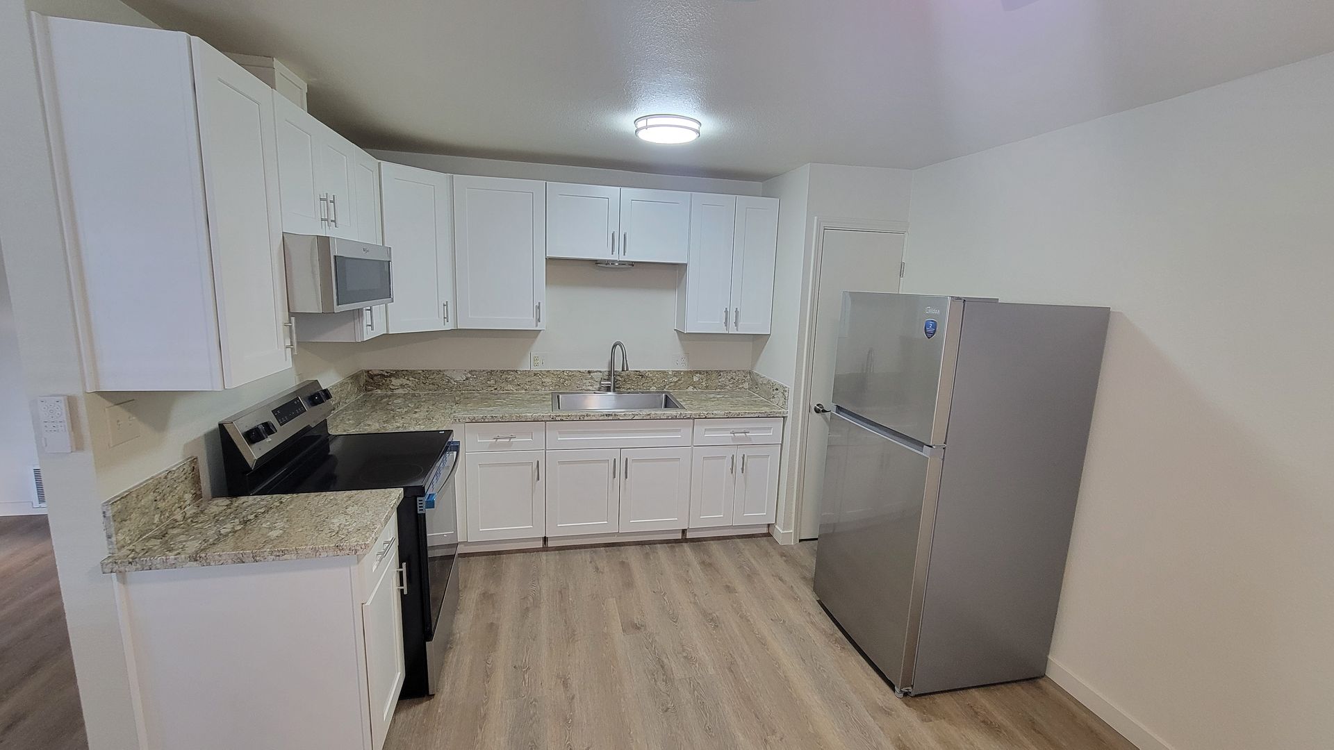 2 bedrooms, 1 bathroom unit as part of a fourplex - near Memorial Hospital. Brand new floors and fresh paint, new windows/doors & appliances! Central heat/air & covered parking. Water/garbage/sewer & landscaping is paid.